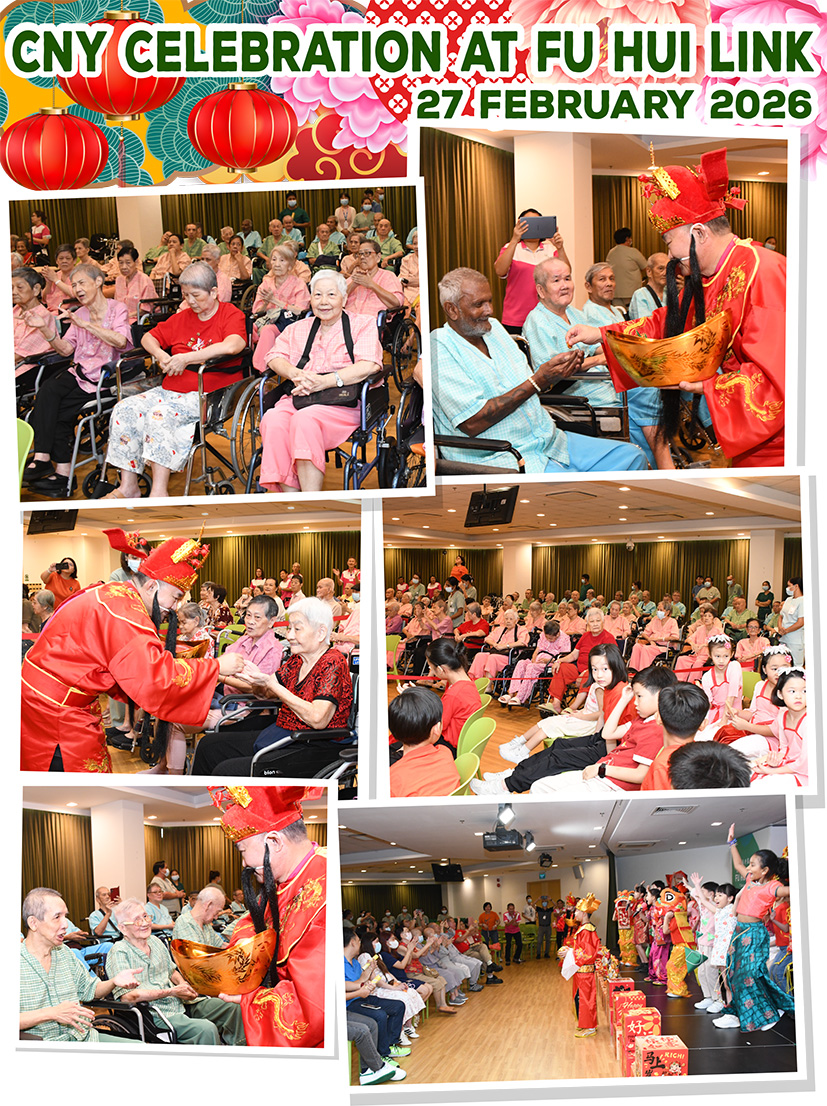 Grace Lodge seniors enjoyed a hearty Chinese New Year celebration, together with students of Hearty Care Centre (HCC) and seniors of Fu Hui Golden Care Centre.